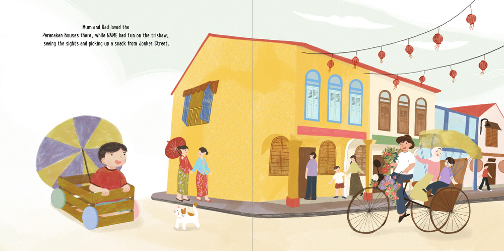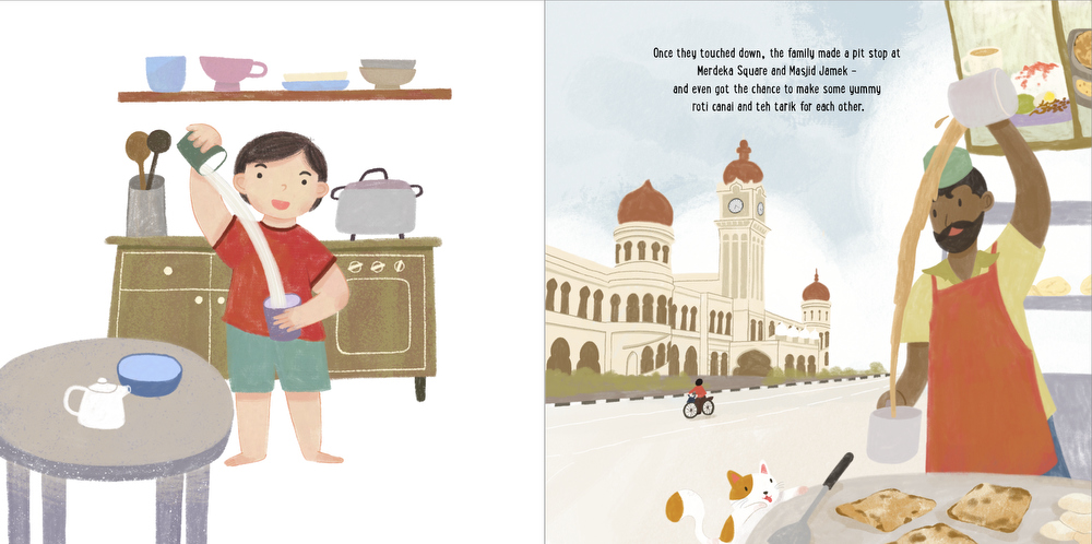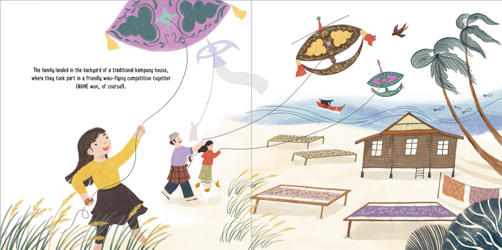 Step into these pages and soar through familiar sights – from the glittering skyline of Kuala Lumpur, the hustle and bustle, (and hawker food) of Penang and Melaka’s historical monuments, to Terengganu’s beloved traditions and the natural beauty of East Malaysia- as you star as the main character of your very own story!